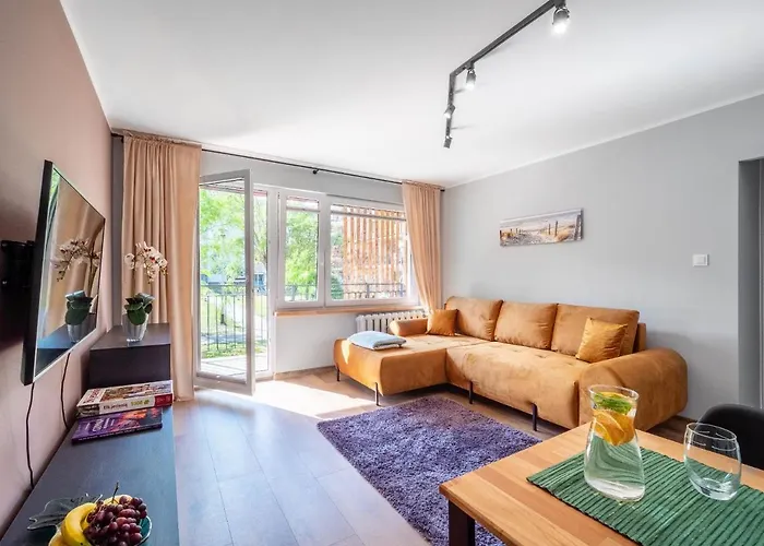 Apartament Przy Lesie Z 1 Sypialnia By Rentersアパ-トメントアパ-トメントには,器具でいっぱいの台所,座席,無線LAN とテレビ付きの客室があります. レダ・アクアパ-クはこの宿泊施設から7kmに位置しています.